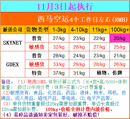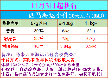 * 默认体积重与实重比较,取较重者计算运费,免抛/半抛优惠请参考报价说明。