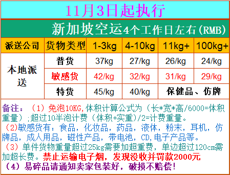* 默认体积重与实重比较,取较重者计算运费,免抛/半抛优惠请参考报价说明。